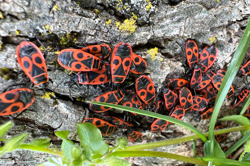 날씨가 따뜻한 날 프랑스에서 공원을 산책하다보면 바닥이나 가로수 나무에 위의 사진처럼 다닥다닥 붙어있는 빨간색 딱정벌레들을 쉽게 볼 수 있습니다. gendarme에 대해 자세히 알게되기 전까지 이 벌레에 대한 첫인상은 그리 좋지많은 않았습니다. 처음에 저렇게 다닥다닥 무리지어 있는 모습을 보고 깜짝 놀랐는데요, 색깔부터가 빨간색이라 왠지 독이 있을거 같은 생김새에 무리지어 다니는 모습이 너무 징그러웠습니다.