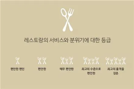 한편, 음식점의 서비스나 분위기, 안락함과 같은 기준은 가이드북에 별도로 포크 나이프 픽토그램으로 표시한다고 합니다. 즉 미슐랭 별점의 척도는 오로지 음식의 맛이라는 것이죠. 후줄근한 노점상이라도 맛만 있으면 미슐랭 별점을 받을 자격이 주어진다는 겁니다.