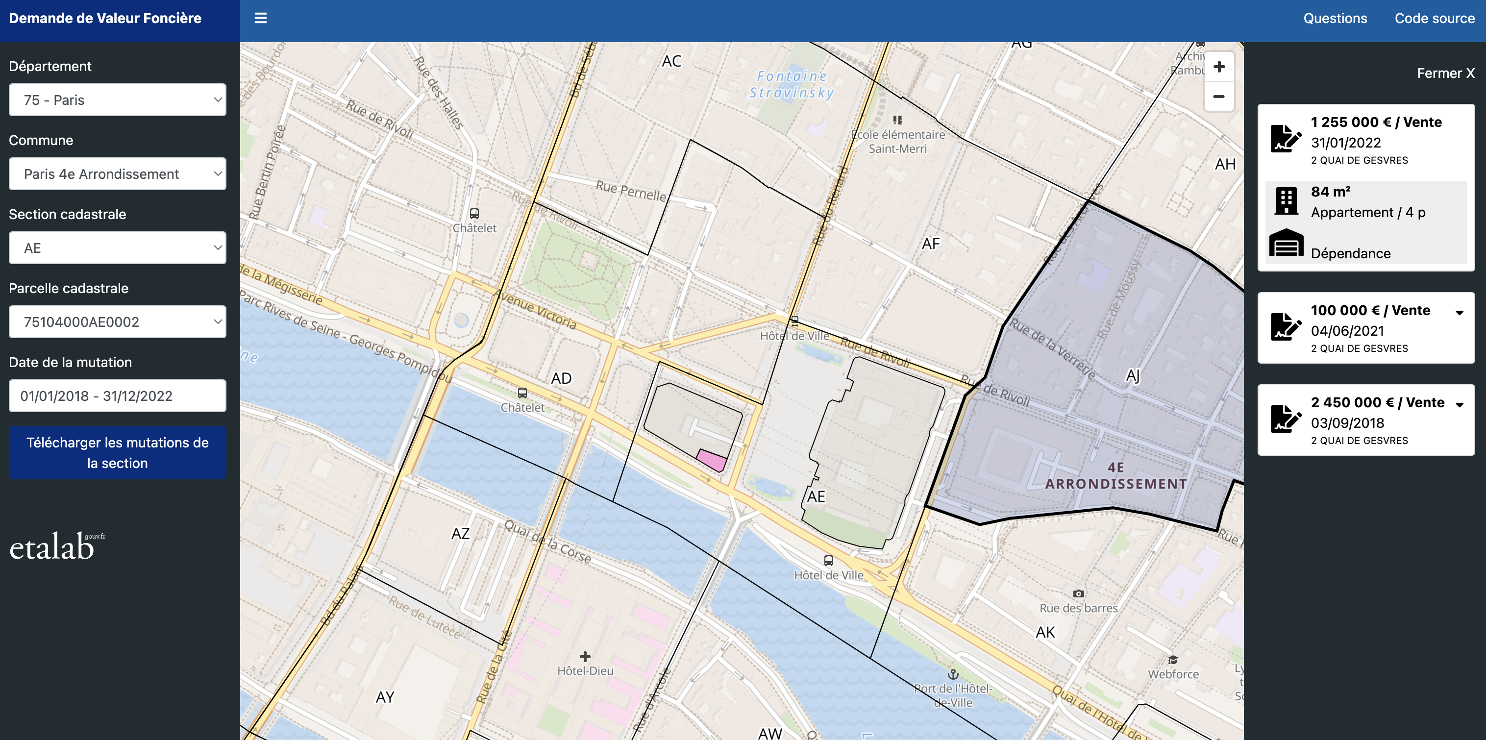 프랑스의 실거래 집값을 알아볼 수 있는 사이트 app.dvf.etalab.gouv.fr